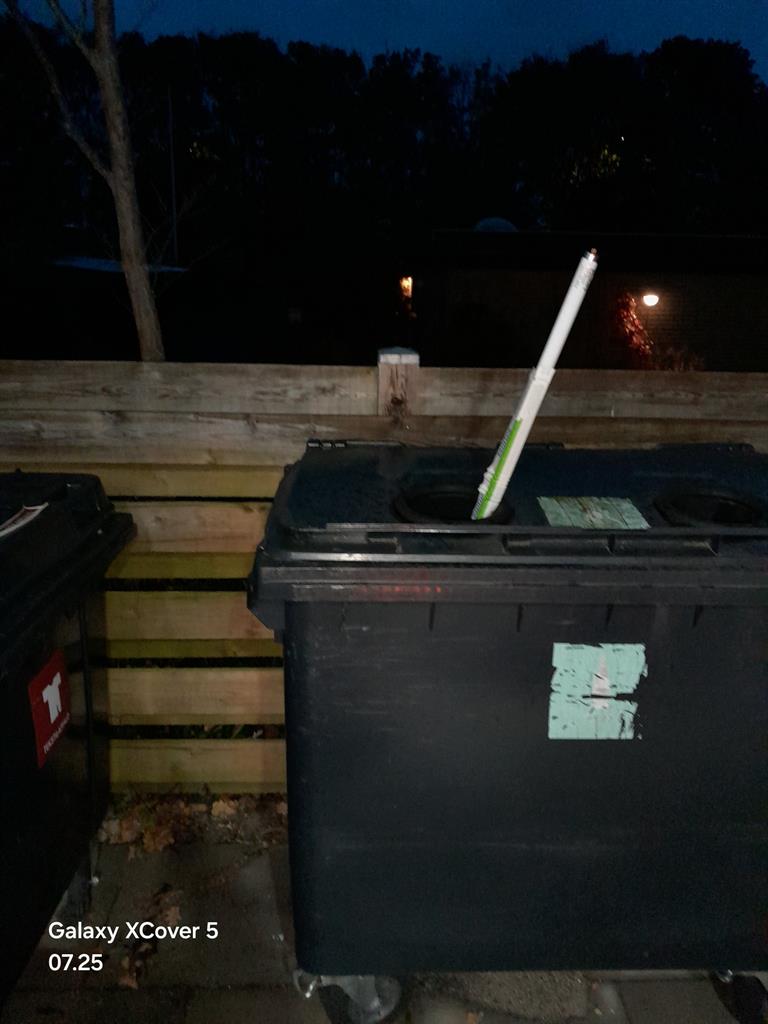 Lysstofrør i containeren så man ikke kan åbne og lukke- Nogen må have en dårlig smag i munden.